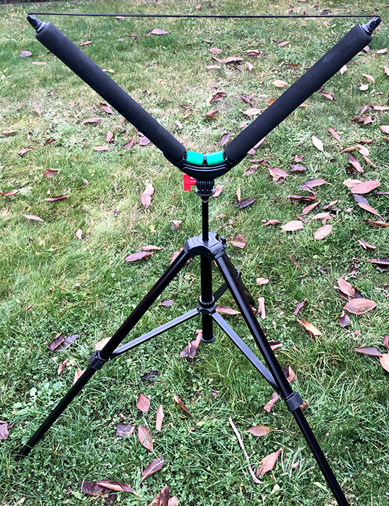 Wasserfalteimer noch zum beschweren verwenden und diesen unten am Dreibein anbinden.
