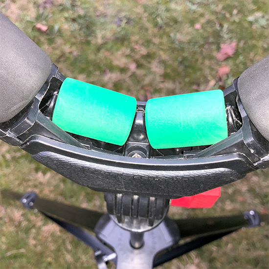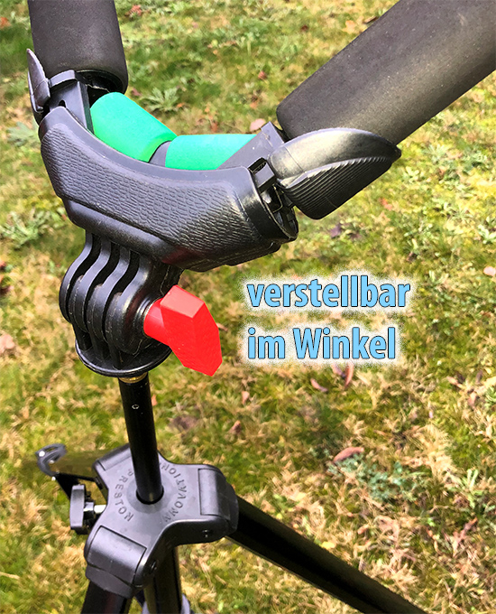 kompakt zusammenpacken und ist zusätzlich über die rote Stellschraube am V-Kopf im
