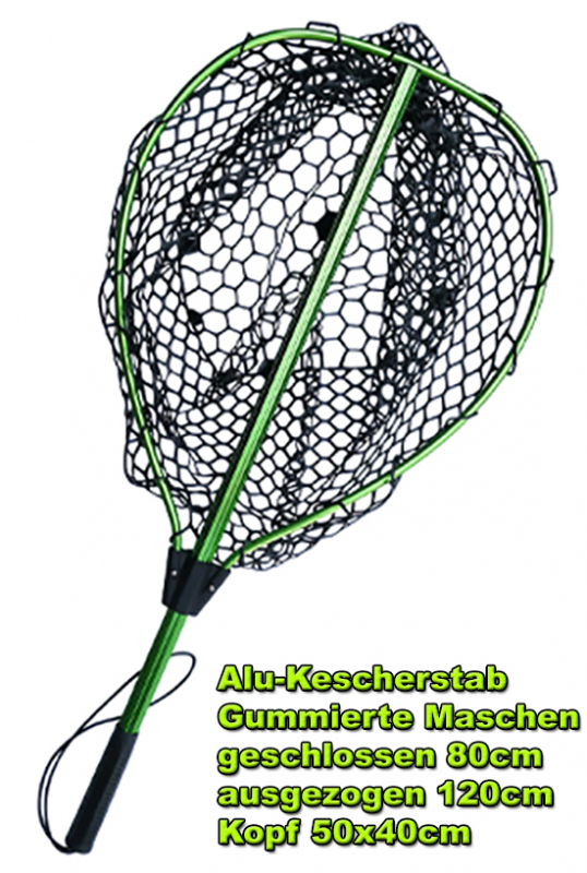 Das Maver Kescherset ist zusammengeschoben 80cm und ausgezogen 1.20m lang