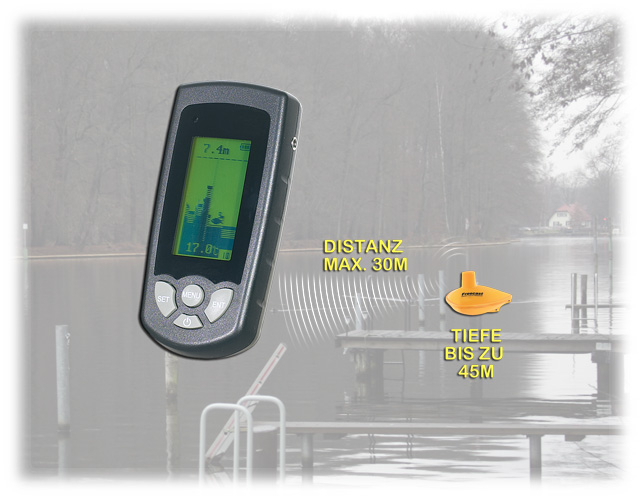 Das Echolot arbeitet in einem Temperaturbereich von 0°C bis 40°C und benötigt 4 AAA Batterien