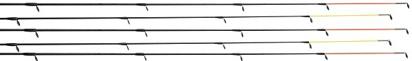 Ersatzspitzen aus Glasfiber mit 2.8mm Durchmesser und 50cm Länge.Die obersten 3 Ringe haben einen Innendurchmesservon 3.0mm und die letzten beiden Ringe 4mm Innendurchmesser.