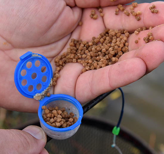 Ich habe hier im Bild 2mm Sonubait Pellets etwas vorgeweicht. Dadurch kleben sie etwas