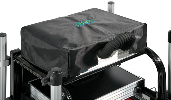 Schwarzer Schutzüberzug für das Sitzkissen ihrer Station.