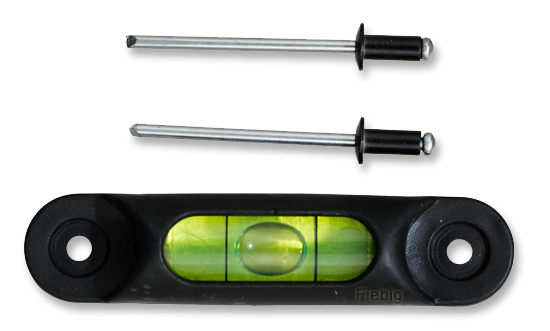 Die kleine Wasserwaage ist ca. 6cm lang und wird über 2 Nietverbindungen an