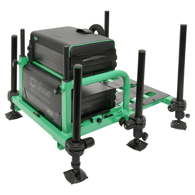 ![]() - Modell Typ Station - Sitzkissen mit speziellem Harz und 2-in-1 System - Schiebende Fußauflage - 2 halbe Schubladen mit eingebauten Staufächern - Neues Verriegelungssystem, einstellbar - Verriegelungssystem Beine 180° mit neuartigem, rutschfestem System für mehr Stabilität - eingebauter Setzkescherhalter in der Fußauflage - 4 teleskopische Beine (36mm) - 2 Standard Beine (36mm) - 1 Fach 80mm hoch - 1 Bodenfach 40mm - 1 Abdeckung - 3 Wasserwaagen - 1 Transportgurt - Befestigung für Hinterräder - Befestigungsanker für Aufstellen auf hartem Untergrund Abbildung von der schwarzer Version der 3810: | ||
