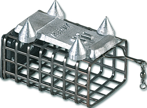 Diese Spezialversion des Feederkorbes ist für das schwere Angeln in starker Strömung gedacht. Hier kommt es darauf an, dass der Feederkorb nicht durchs Wasser rollt und einen festen Halt am Gewässergrund findet. Eingearbeitete Spikes (Spitzen) in die Bleiform helfen dabei wirkungsvoll.