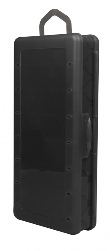 Köderbox mit 7 Einzelfächern zum Transport von kleinen Kunstködern, wie zum Beispiel Wobbler, Blinker und Spinnköder. Das Tropfwasser von gebrauchten Ködern kann durch die Löcher am Boden ablaufen.
