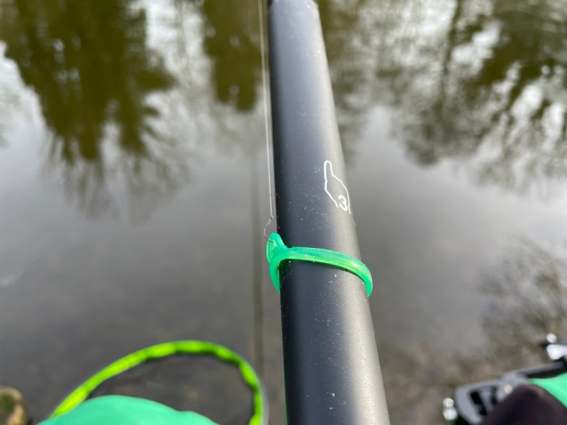 Elastikringe zur Aufnahme des Angelhakens am Rutenkit.