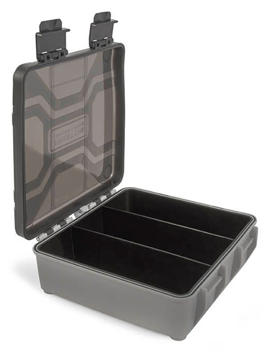 Preston HARTSCHALEN-ZUBEHÖRBOX Perfekt für die sichere und geschützte Aufbewahrung der verschiedensten Zubehörteile, von empfindlichen Pellet-Wagglern und Stipp-Posen bis hin zu Feedern. Die Hartschalen-Zubehörbox wird mit zwei kräftigen Clips geschlossen, die in Verbindung mit der TPE-Dichtung dafür sorgen, dass der Inhalt trocken bleibt. Der mitgelieferte Dreifach-Teiler ist ideal zur sortierten Aufbewahrung unterschiedlicher Feeder und Posen und kann bei Bedarf vollständig entfernt werden, wodurch ein größeres Einzelfach entsteht.