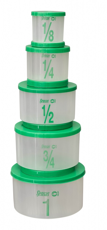 Bestehend aus 5 Dosen zu 1/8, 1/4, 1/2, 3/4, 1Liter.