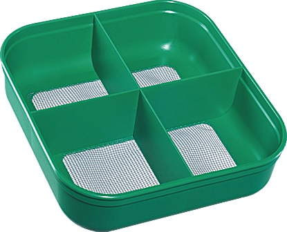 Abmessungen: 160x160x42mm. Die Gaze hat eine Maschenweite von ca. 0.7mm. Je nach Verfügbarkeit liefern wir diese Köderdose in grün oder blau. Vorzugweise jedoch in grün.