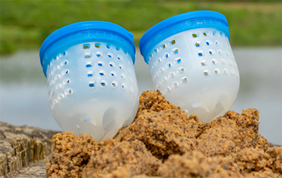 Löchern versehen, sodass lose Futterpartikel mühelos aus dem Pot gelöst werden können.