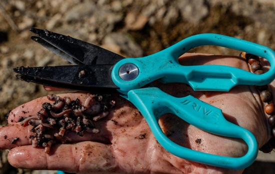 Dank der Doppelklingen-Wurmschere wird das Schneiden von Würmern zu einer einfachen,