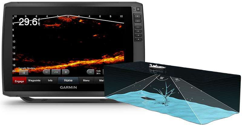 Die Perspektivansicht ist ideal für Untiefen. Genießen Sie einen ultradetaillierten Blickwinkel von oben, Echolotbilder in Echtzeit bis zu 60 m (200 ft) vor Ihrem Boot.