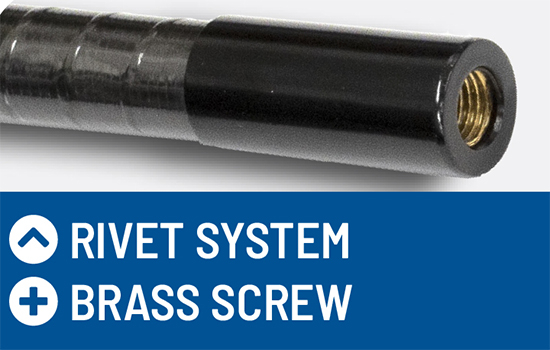 wurde der Stab mit einem Kreuzgewinde zusätzlich verstärkt, um die Bruchfestigkeit zu