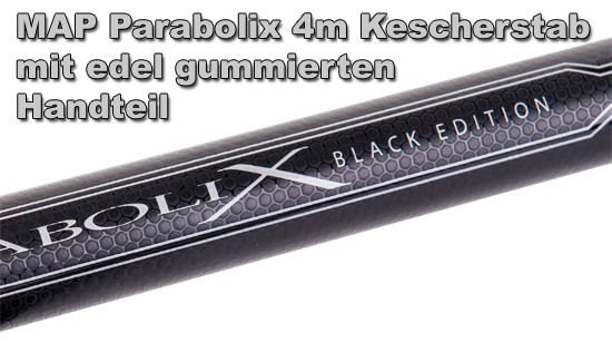 Der dreiteilige MAP Parabolic Kescherstab hat ein genietetes Gewinde im Teil 1 und im Teil 2.