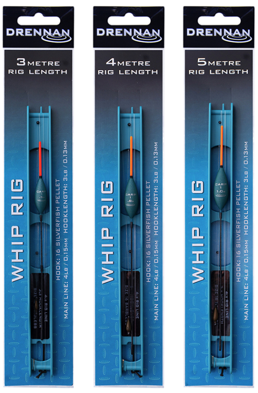 Das Angeln mit der Whip ist die schnellste und einfachste Methode, um grosse Mengen kleiner bis mittelgrosser Fische zu fangen. Diese speziellen Rigs werden mit der Hand gebunden, sie sind gebrauchsfertig und ergänzen das Sortiment der Drennan Vertex Whips. Mit einer 4lb Hauptschnur, einem 3lb Vorfach und einem Schonhaken in Grösse 16 sind sie ideal für Köder wie Maden, Caster, Pellets und Mais. Das Olivette und Dropper Shotmuster erleichtert das Auswerfen, reduziert Verwicklungen und hilft dabei, den Köder schneller zu den fressenden Fischen zu bringen.