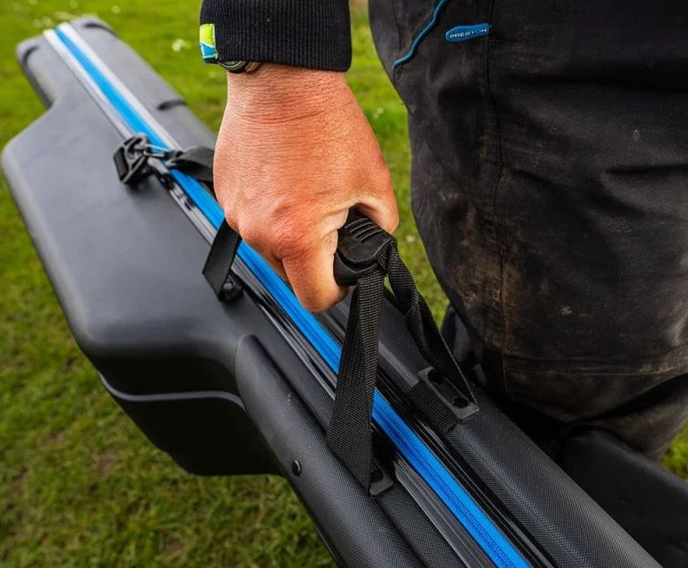194 x 25 x 14 cm, 4.9 Kg Preston Hardcase Rod Safe Der Preston Hardcase Rod Safe ist das ultimative Gepäckstück für die Aufbewahrung und den Transport von Ruten und Poles. Der Rod Safe ist aus einer Hardcase-Außenhülle gefertigt, die Schutz bietet und gleichzeitig leicht zu pflegen ist. Auf einer Seite ermöglichen interne EVA-Teiler und ein tiefer Rollenstauraum die problemlose Aufbewahrung von bis zu vier Ruten. Die andere Hälfte der Tasche ist perfekt für die Aufbewahrung von bis zu drei Pole-Butt-Sections oder Kescherstangen, Distanz-Sticks und Ersatz-Feederspitzen geeignet ist, wenn Sie die Rod Safe als reine Rutentasche verwenden möchten. Starke robuste Hartschalen Hülle Innere EVA Teiler Sichere Klettverschlüsse mit Branding Robuste, haltbare Reißverschlüsse Gepolsterter Tragegurt