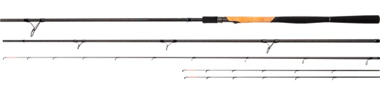 Die 3,6 m lange Feederrute ist ein echter Allrounder: Sie kann mühelos bis zu 50 Meter weit werfen und bietet dabei eine sanfte, reaktionsschnelle Aktion. Die dreiteilige Konstruktion erleichtert nicht nur die Lagerung und den Transport, sondern sorgt auch für eine gleichmäßige und nahtlose Aktion über den gesamten Blank.