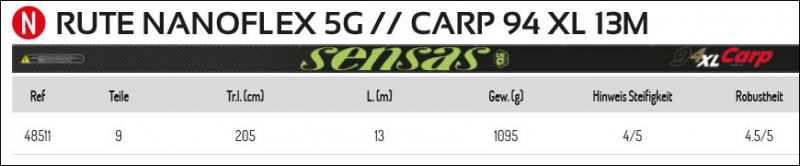 Ausstattung des Pakets1x Rute NANOFLEX 5G CARP 94 XL - 13M