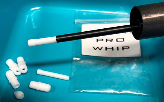 Die Acolyte Pro Whip hat dagegen in seinem Zusatzkit eine Vollspitze wie bei der Originalrute drin.