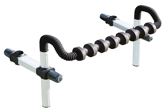Gepolsterte und zusammenklappbare Rutenablage mit 7 Ablagepunkten die an den Beinen