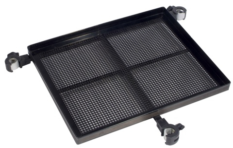 Stabile und gelochte Ablagefläche mit einer Art Borde, die ein Wegrollen von Kleinteilen