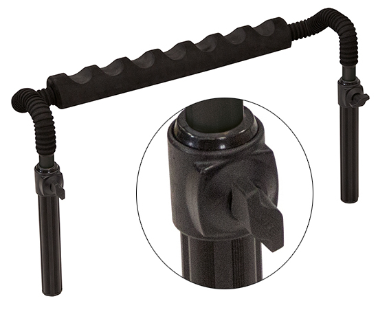 Gepolsterte und zusammenklappbare Rutenablage mit 7 Ablagepunkten die an den Beinen