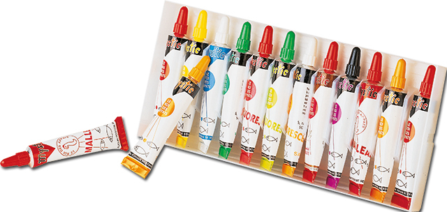 Das Kit mit den 12 farbigen Tuben rundet das komplette Programm ab. Hier ist von jedem etwas dabei